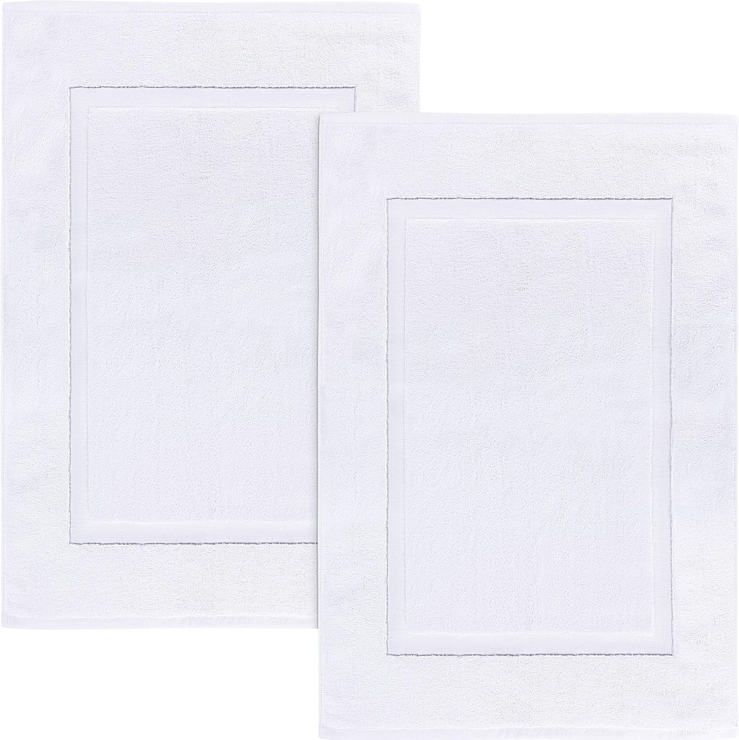Utopia Towels Cotton Banded Rug, Bath Mats, Not a Bathroom Rug, 21 by 34 Inches, 100% Ring Spun Cotton, Highly Absorbent Shower Bathroom Floor Mat, White, 2 Pack