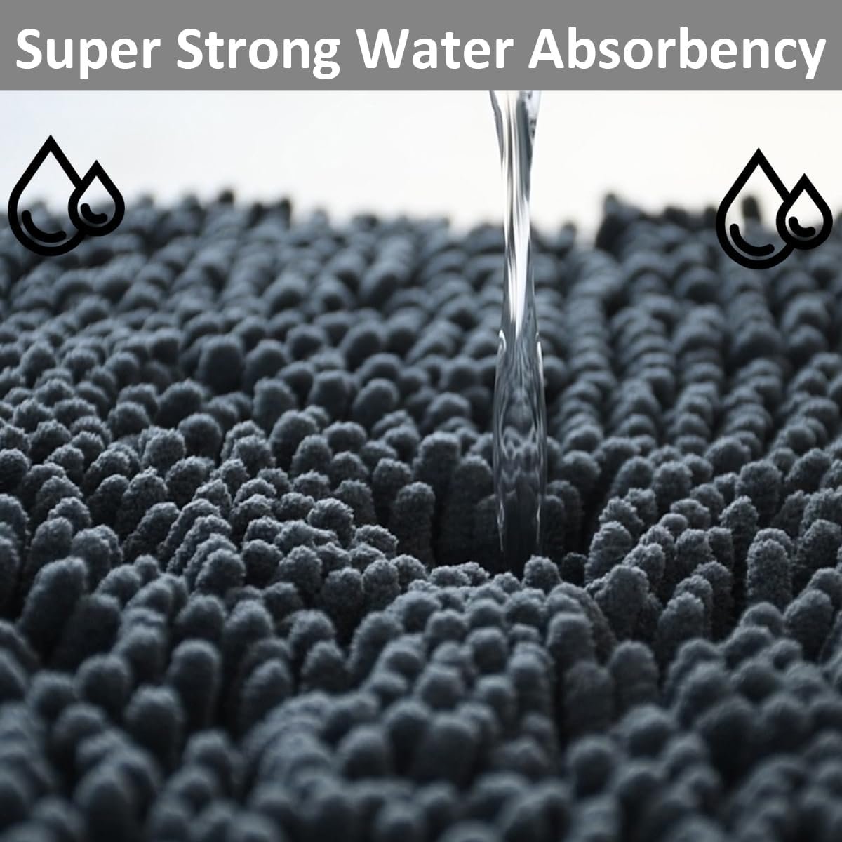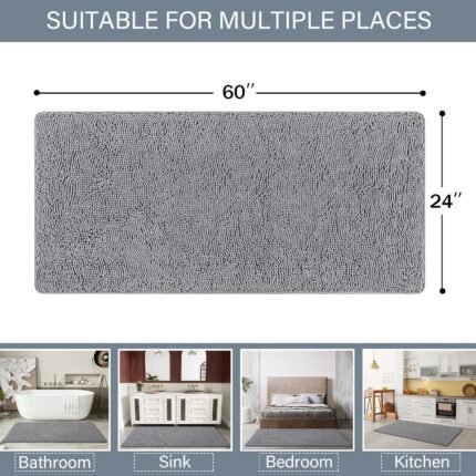 - 【Ultra Plush Shag and Soft Feel】Our chenille bathroom rugs made of thousands of super long and soft individual microfiber shags, enough length shags and over 3 phones’s thickness makes them surround the soles of your feet, make your feet feel comfortable.