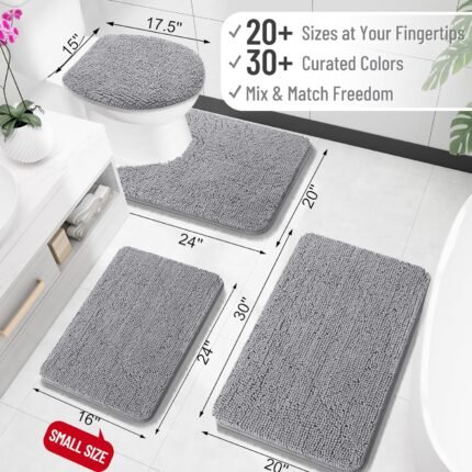 - 【Non-Slip Bathroom rugs】Our chenille bathroom rugs set use anti-slip PVC backing design, friendly design for after taking shower old, child, pet. This anti-skid backing has practically slip resistance on the tile floor surface, that it won’t slip or slide to keep you more safe and cozy. The rugs are much stronger and durable for long lasting use.