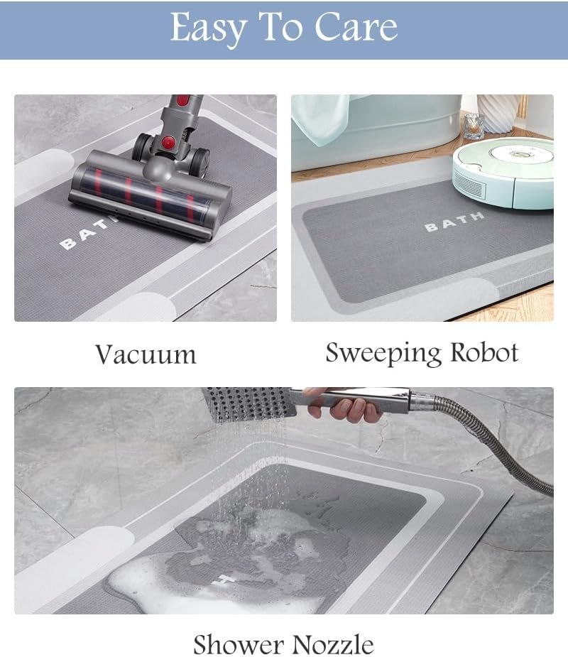 - Absorbent & Stain Resistant: Its specially engineered nano-porous smooth surface instantly absorbs dripping water, leaving no conspicuous watermarks or stains. Whether stepping out of the shower or washing your hands, you can trust this super absorbent bath mat to keep your space clean and safe.