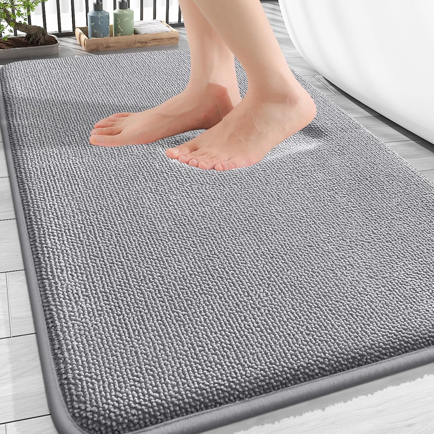 OLANLY Thick Memory Foam Bath Mat Rug 30×20, Extra Soft Absorbent Bathroom Rugs, Quick Dry Bath Mats, Non-Slip, Machine Washable Carpet for Bathroom, Tub and Shower, Home Decor Accessories, Grey