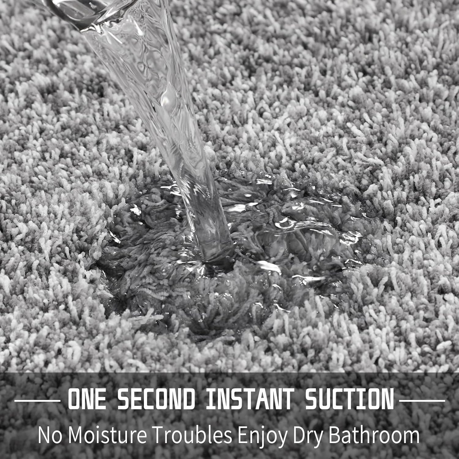 - [ ULTRA-ABSORBENT and QUICK-DRYING ] Our plush bath rugs for the bathroom showcase a dense pile of absorbent fibers that effortlessly soak up water. Step onto the mat with confidence right after your shower, preventing any water from being tracked onto your bathroom floor. The high-density material excels not only in moisture absorption but also in providing a cushioned haven for your feet, ensuring warmth and coziness even on the coldest tiles