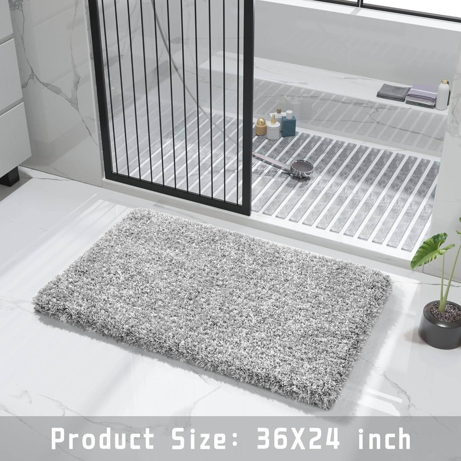 Yimobra Bathroom Rugs Non Slip Washable 36×24, Ultra Soft and Water Absorbent Bath Mats, Plush Fluffy Shower Mat Outside, Luxury Microfiber Thick Matts for Bathroom Floor/Tub, Light Gray and White