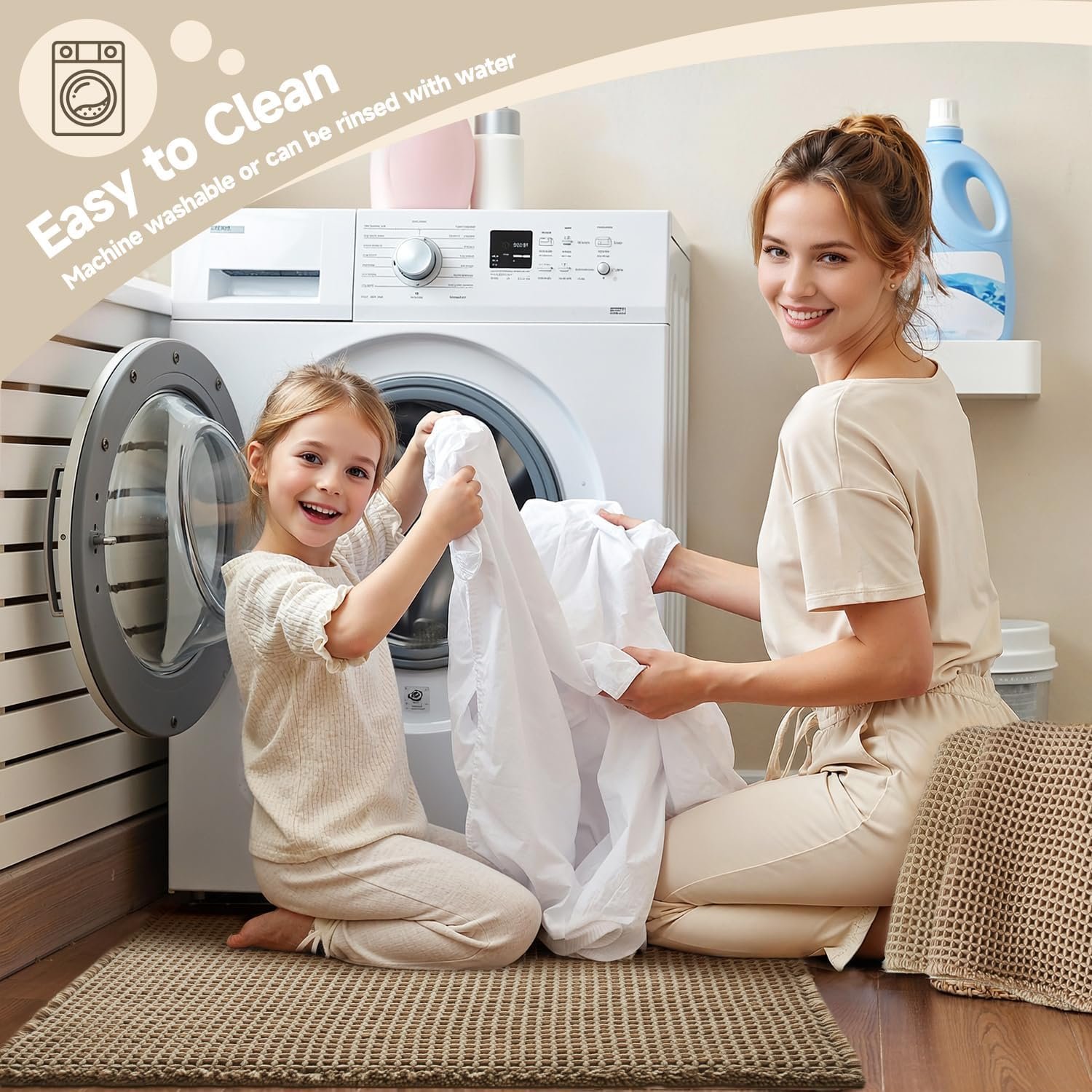 • Versatile and Stylish: Available in a variety of sizes and stylish colors, these waffle bathroom rugs are the ultimate multitaskers. Perfect for your sink, shower, or bathtub, they also work in the kitchen, laundry room, RV, hallway, entryway, or even on stairs. Wherever comfort and style are needed, this waffle knit bath mat gets the job done