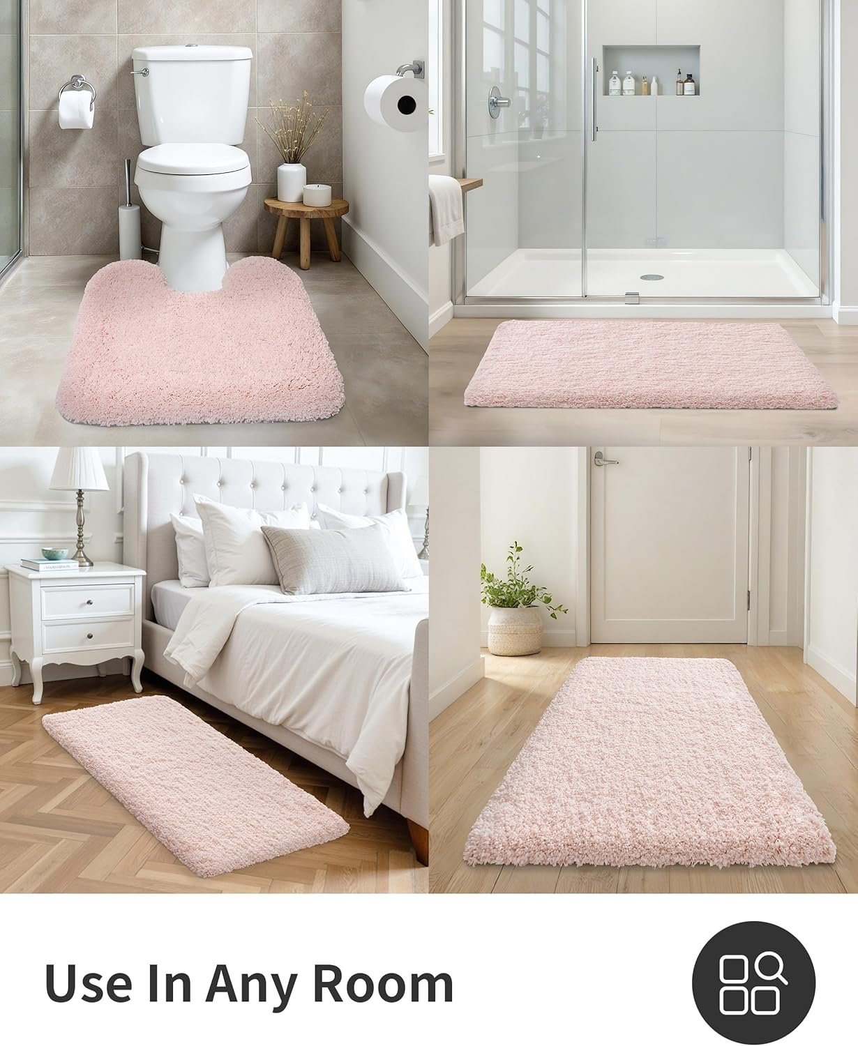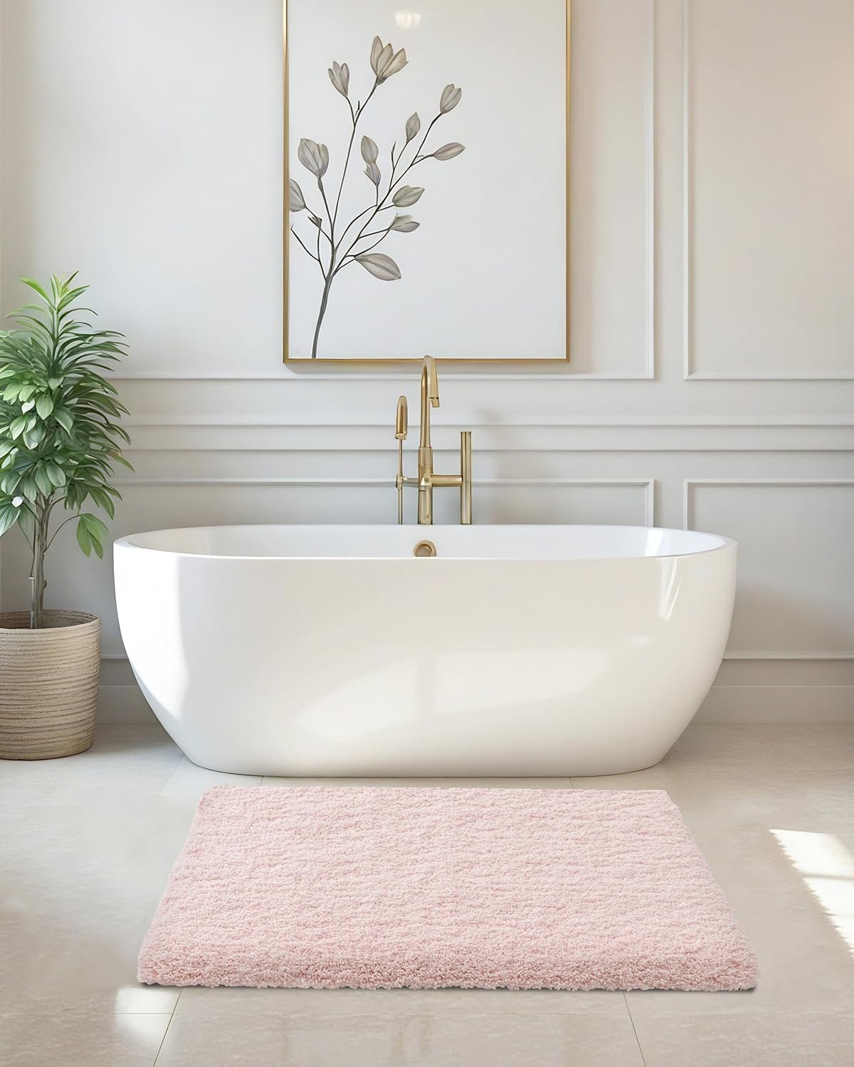 • Luxurious Touch and Aesthetic Design:this high plush bathroom rugs features 1.8-inch fluffy pile that feels so soft and delicate,providing an ultimate comfortable experience.its elegant design and rich color options (such as pink,white, blue, gray) can easily blend into various home styles,adding a touch of luxury and fashion to your bathroom