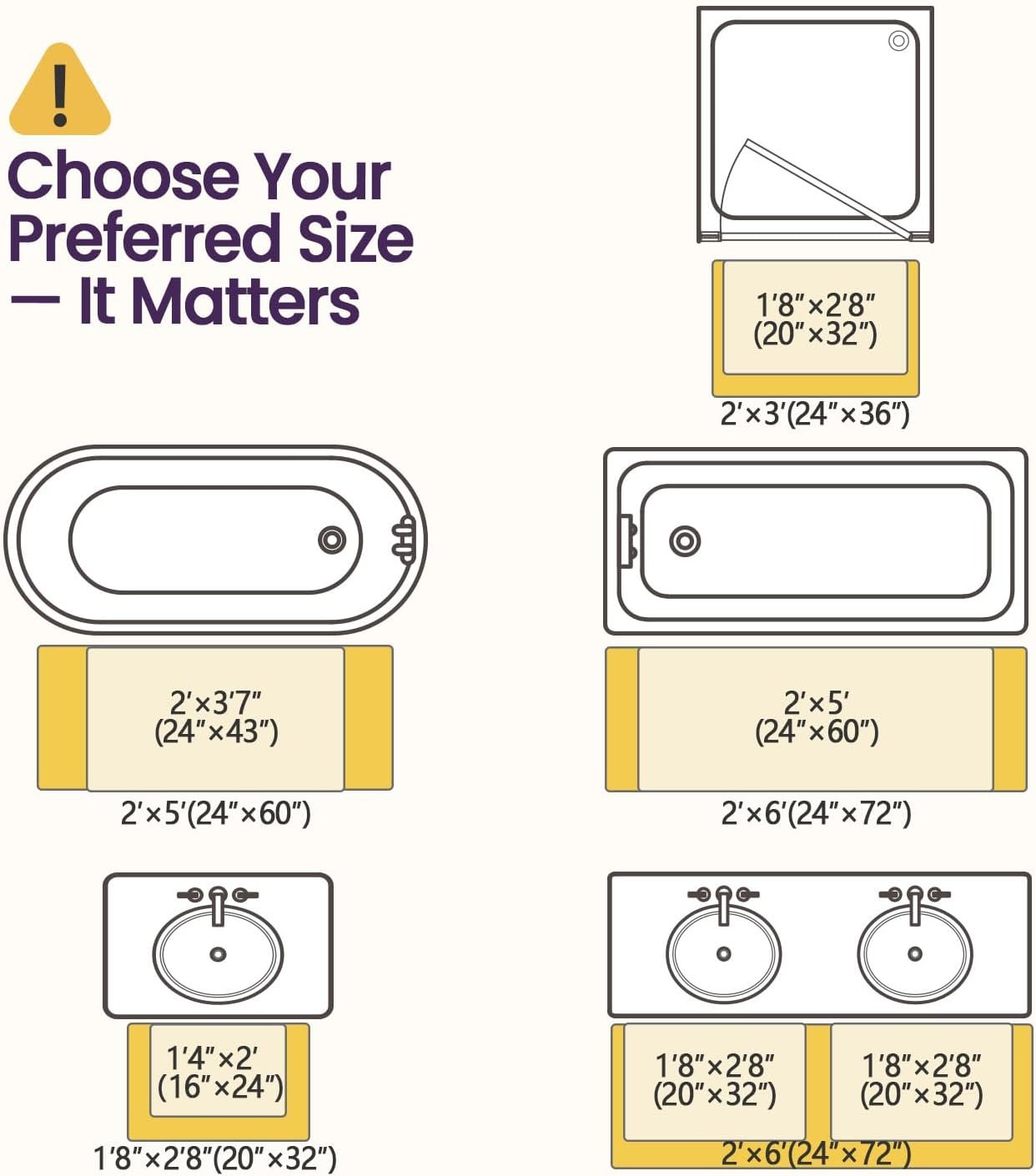 - Non Slip Backing: Equipped with a strong TP rubber backed that grips firmly to the floor surface, preventing the mat from sliding or bunching up. It provides peace of mind, especially in high-moisture areas. Note: Make sure floors are dry under the shower mat