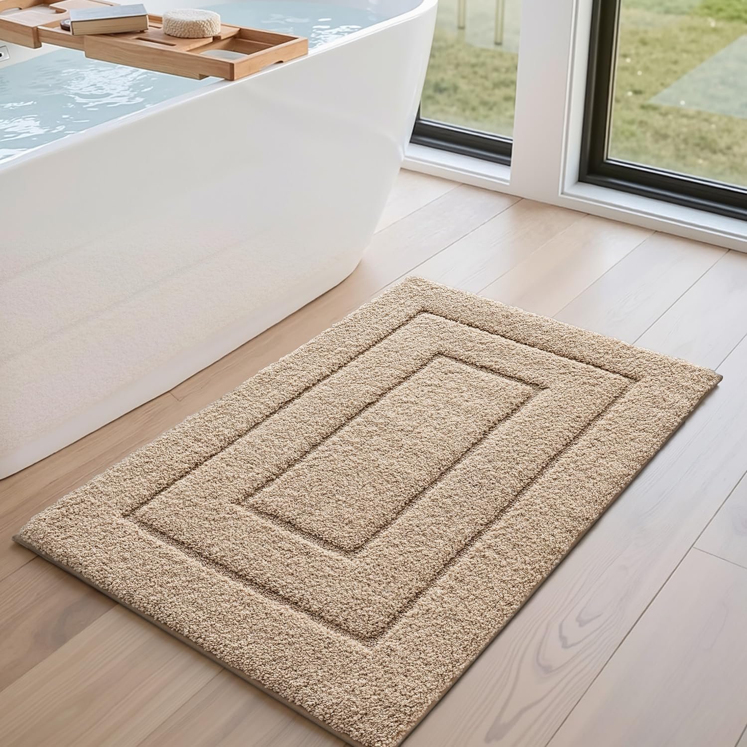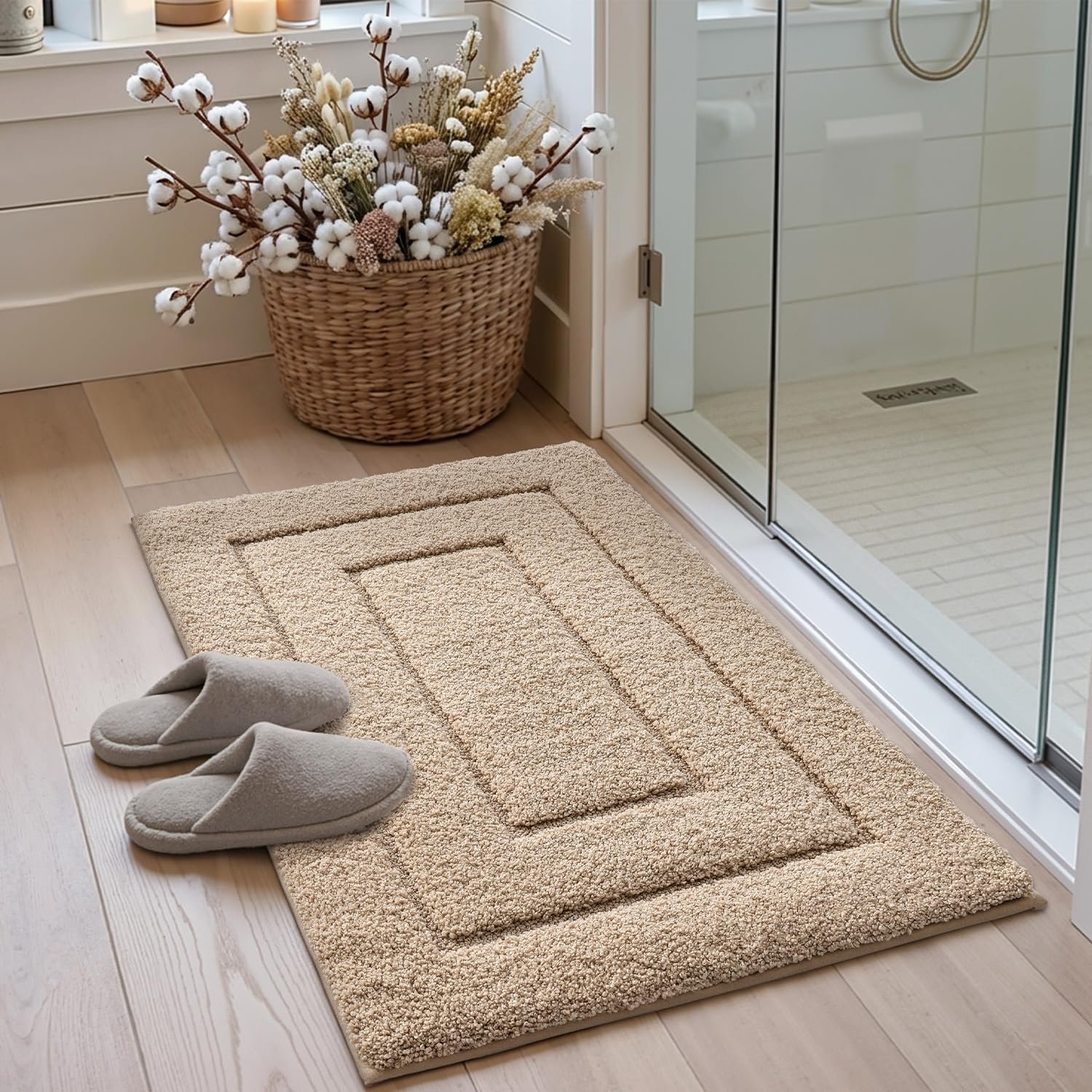 DEXI Bathroom Rug 43×24, Non Slip Washable Bath Mat for Shower Floor, Extra Large Absorbent Soft Bathmat with Rubber Backing, Quick Dry Microfiber Carpet, Beige