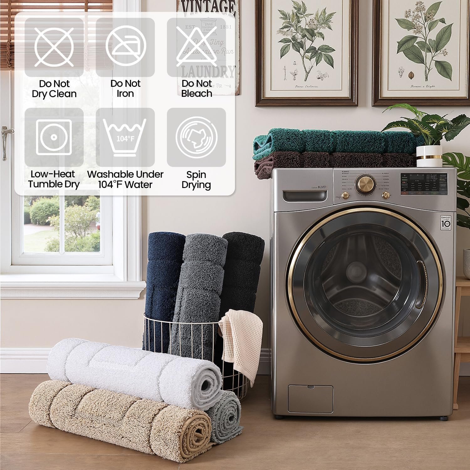 - Absorbent and Quick Dry: Made with thick, high-density microfiber, quickly and efficiently traps excess water from baths, showers, and sinks. This not only protects your floors from water drips but also keeps your feet dry in no time