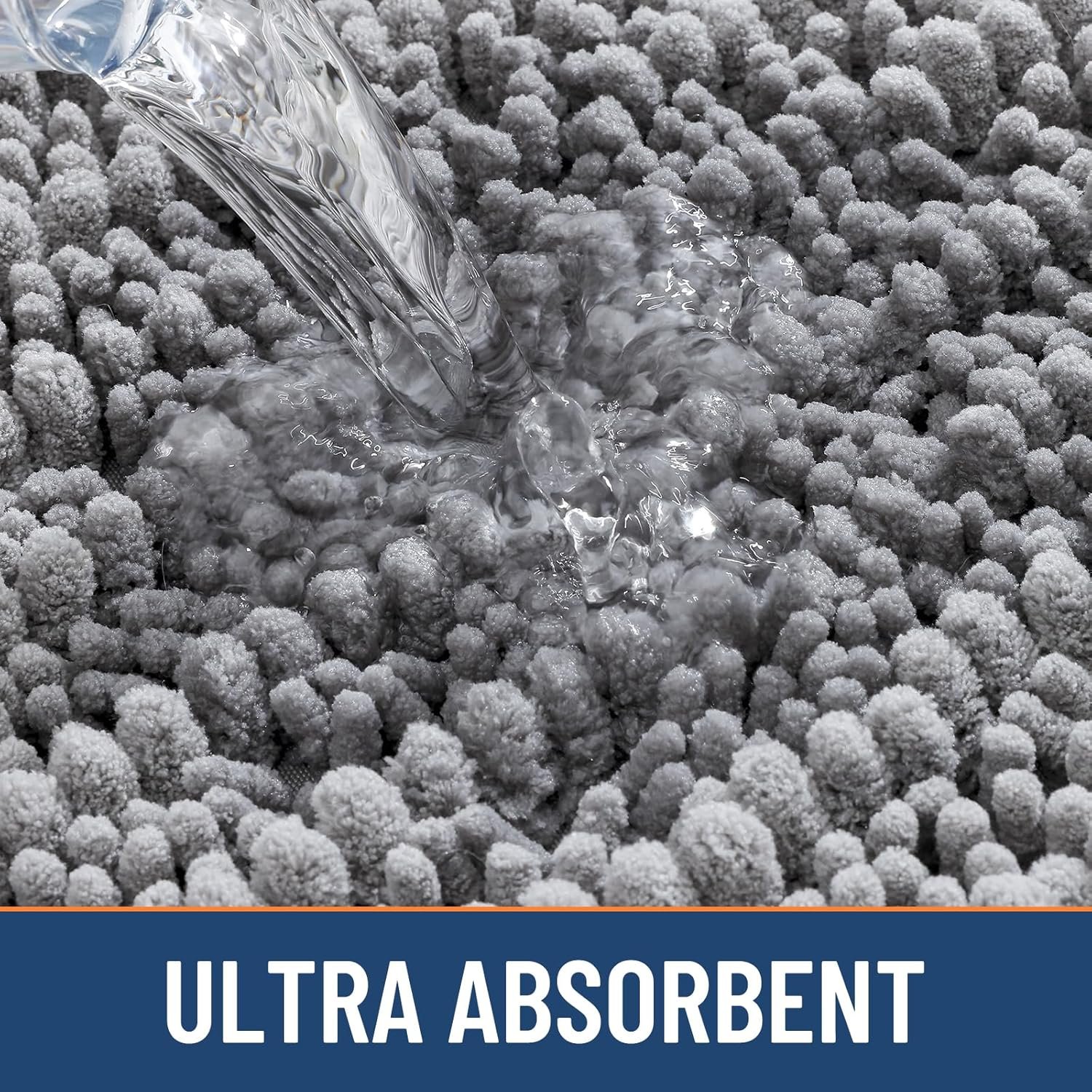 Yimobra Bathroom Rugs Non Slip Washable - Ultra Soft Absorbent Chenille Bath Mat, Quick Dry Shaggy Floor Carpet for Tub Shower, Gray Home Decor Accessories, 24x17 Inch