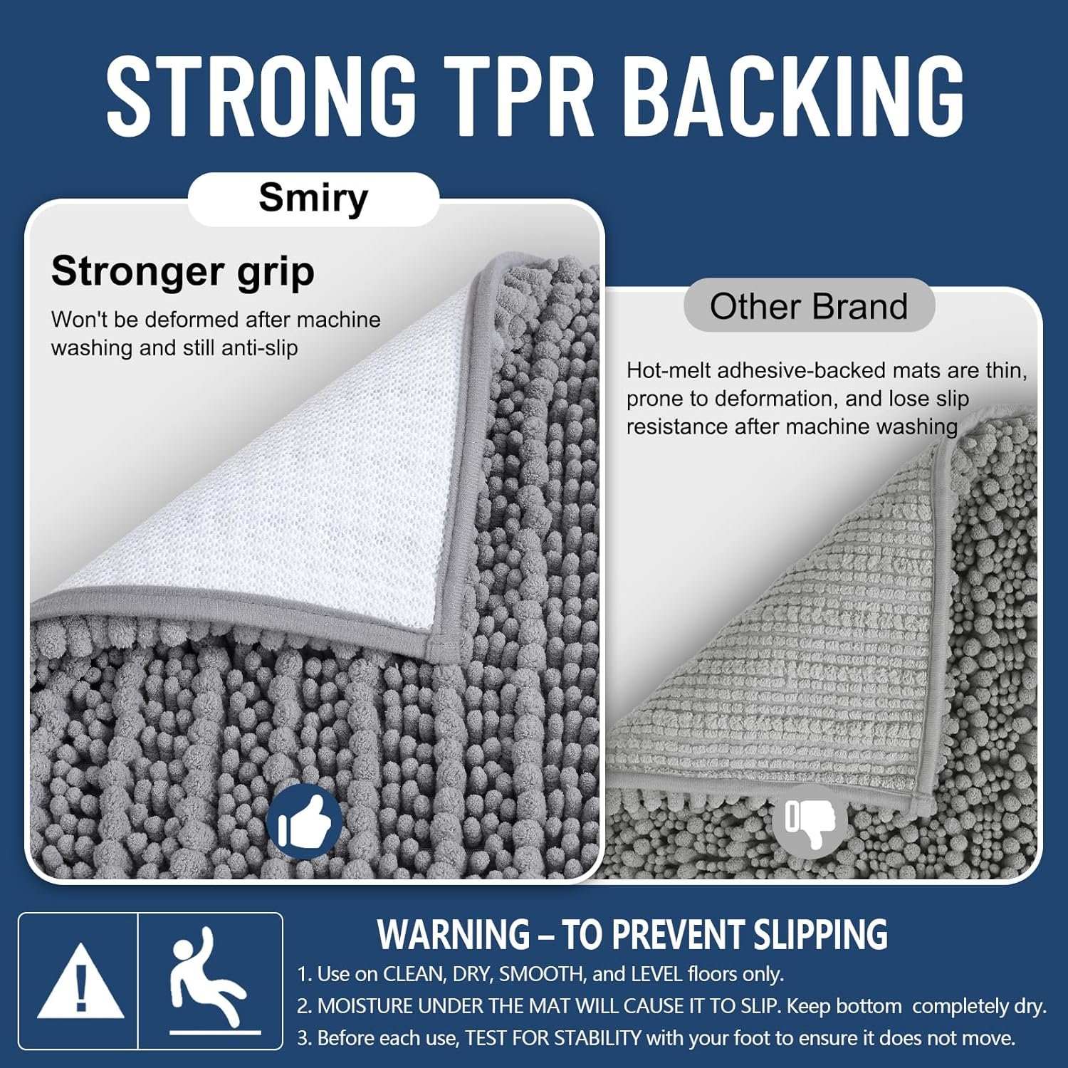 - [Excellent Absorbent] Crafted with thousands of ultra-absorbent microfiber shags, Smiry Bathroom Rugs swiftly soak up moisture, preventing wet floors and ensuring a clean, dry environment. With deep pile design, these mats dry rapidly, ready for your next use.