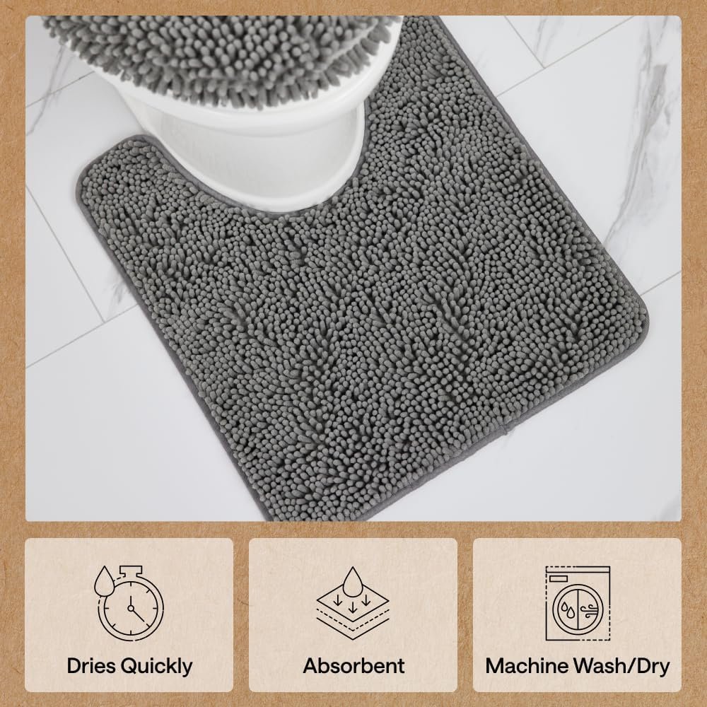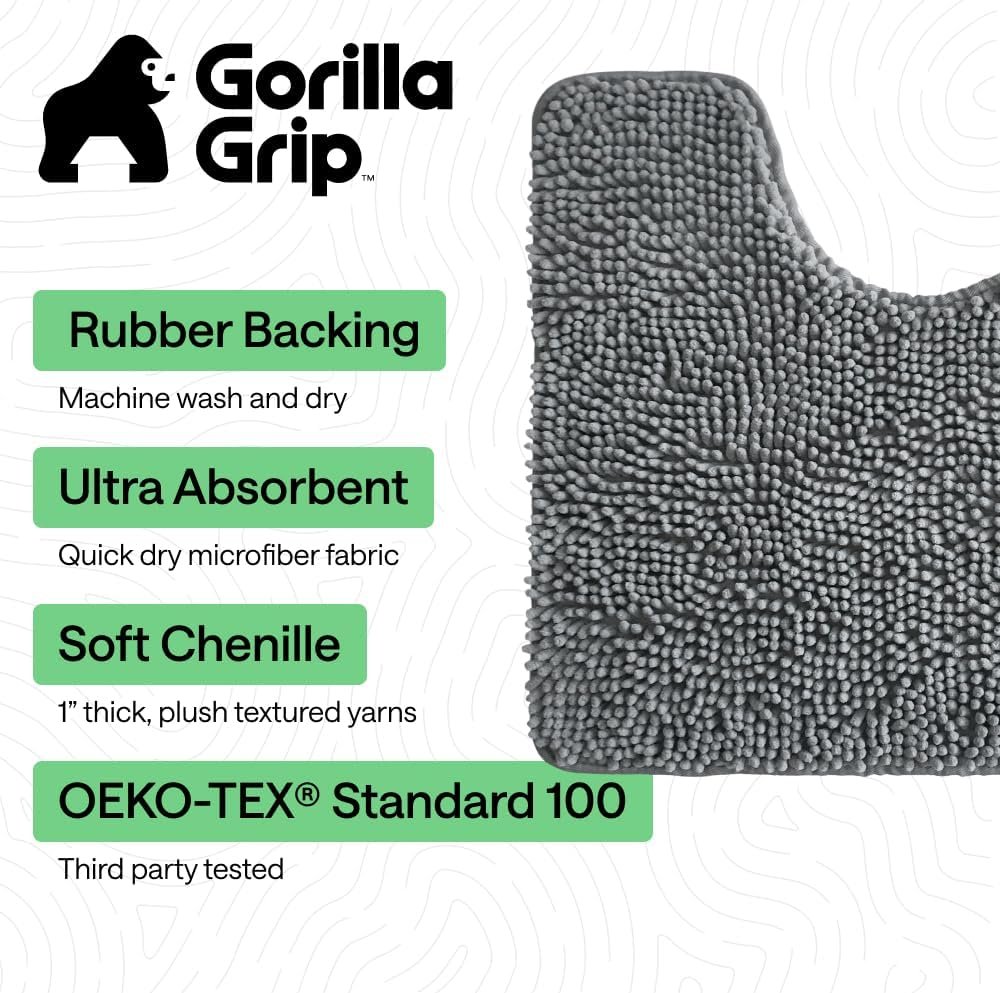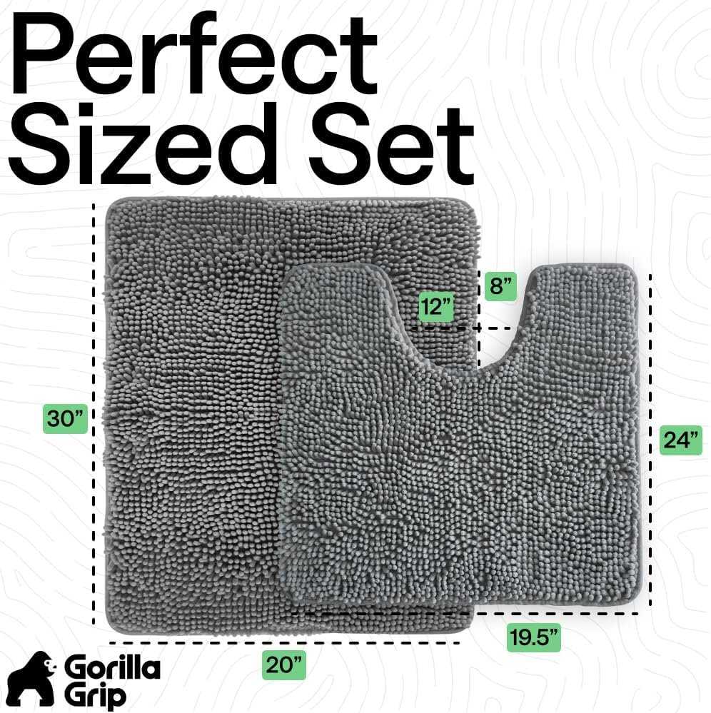 GORILLA GRIP Bathroom Rug Sets, Soft Chenille 2 Piece Area Rugs Set, Toilet Base Mat and 30×20 Carpet, Absorbent Microfiber Washable Mats Dry Quickly, Home Décor and Bath Room Accessories, Grey
