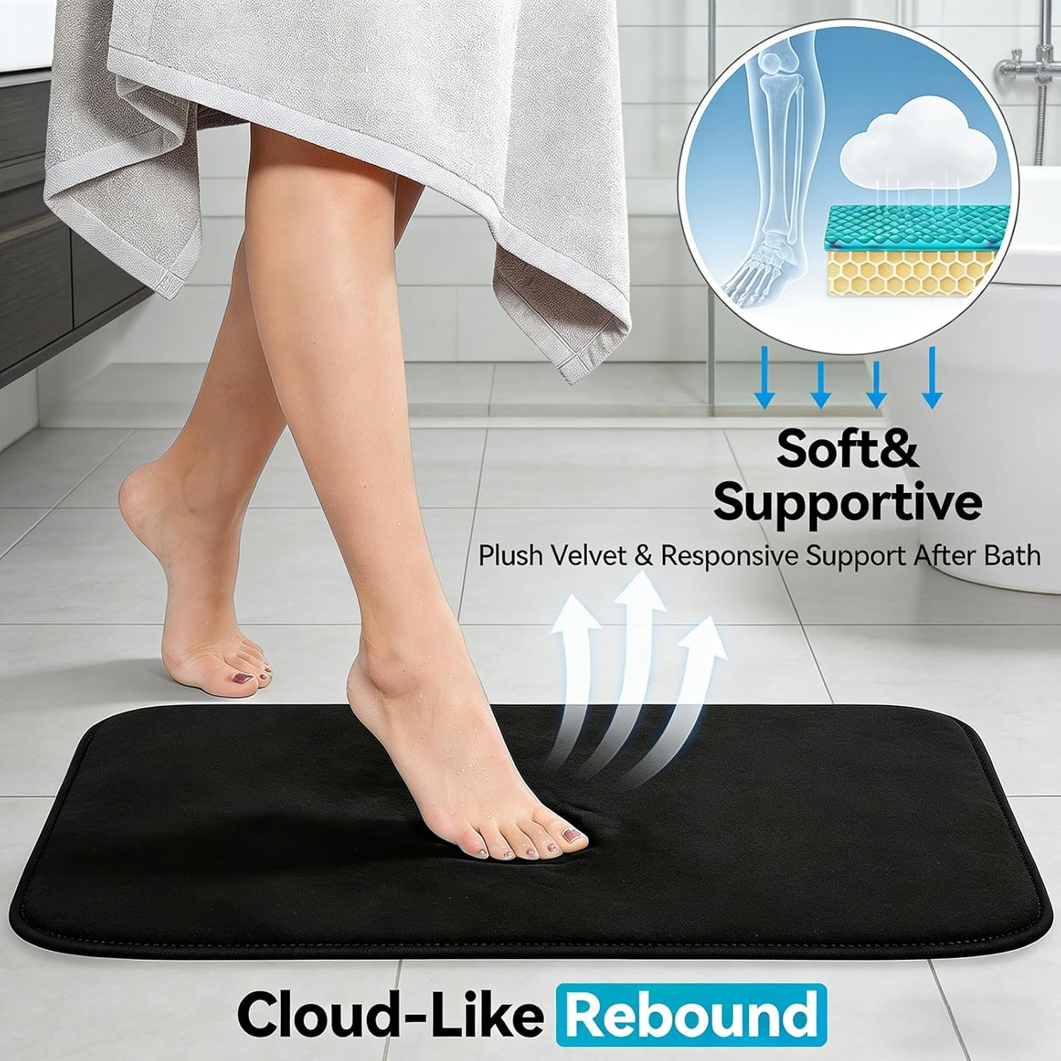 - 【Ultra-Plush Comfort with Memory Foam Support】 Experience cloud-like softness underfoot with our velvet fleece material, filled with responsive memory foam that not only offers a luxurious shag feel but also molds to your feet for joint relief and superior comfort after a bath or shower. It’s the perfect upgrade for bare feet on cold bathroom floors, transforming your daily routine into a spa-like moment of relaxation.