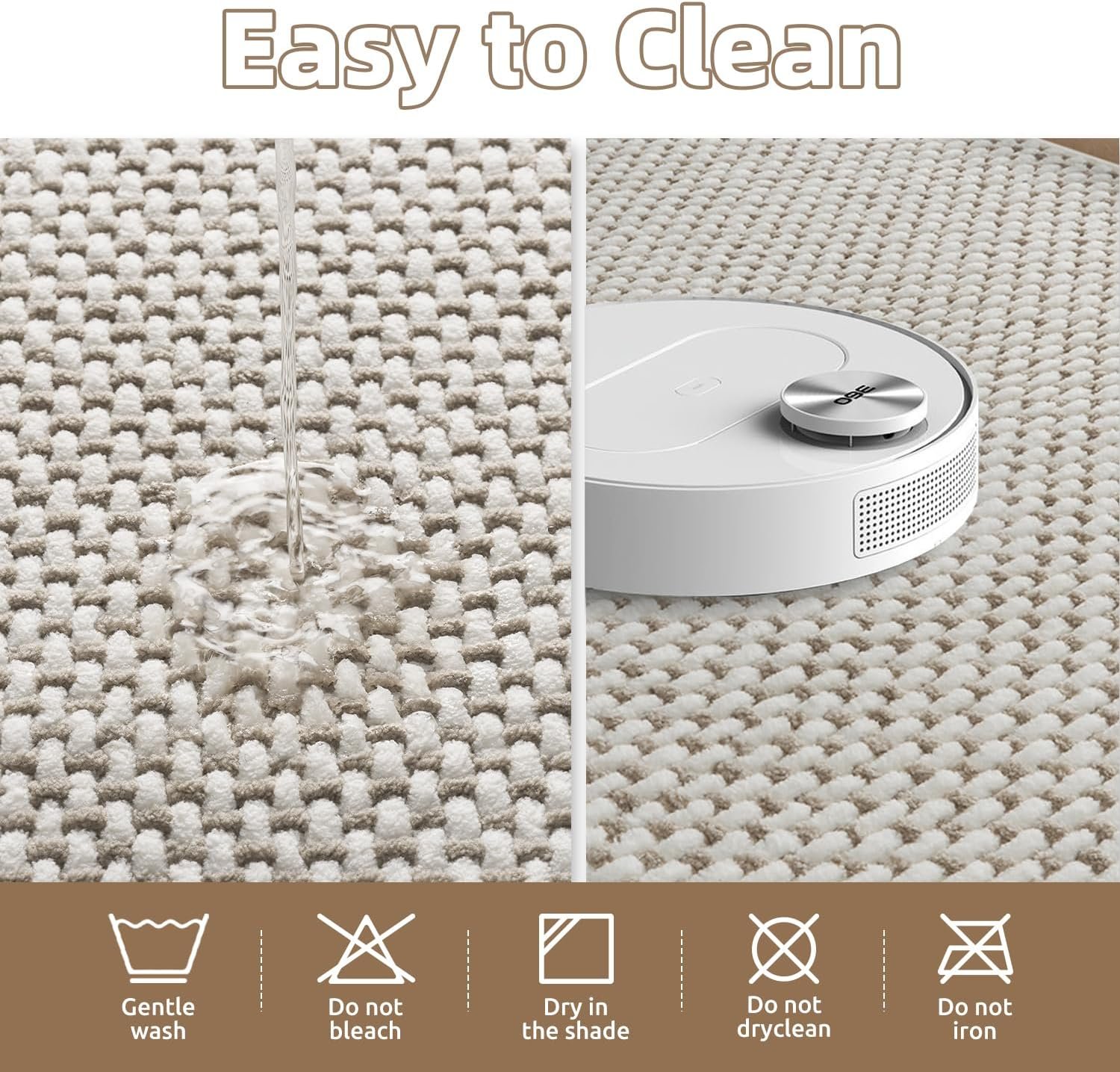 • Easy Care Guide: With multiple reinforcement processes, bathroom mat uses a simple care routine while helps maintain product quality. Solid stains can be removed with a vacuum cleaner or a robot vacuum cleaner. Liquid stains can be rinsed with clean water and gently scrubbed to get rid of the stains, then air dry in a cool place to restore bathroom mat to near-new condition.