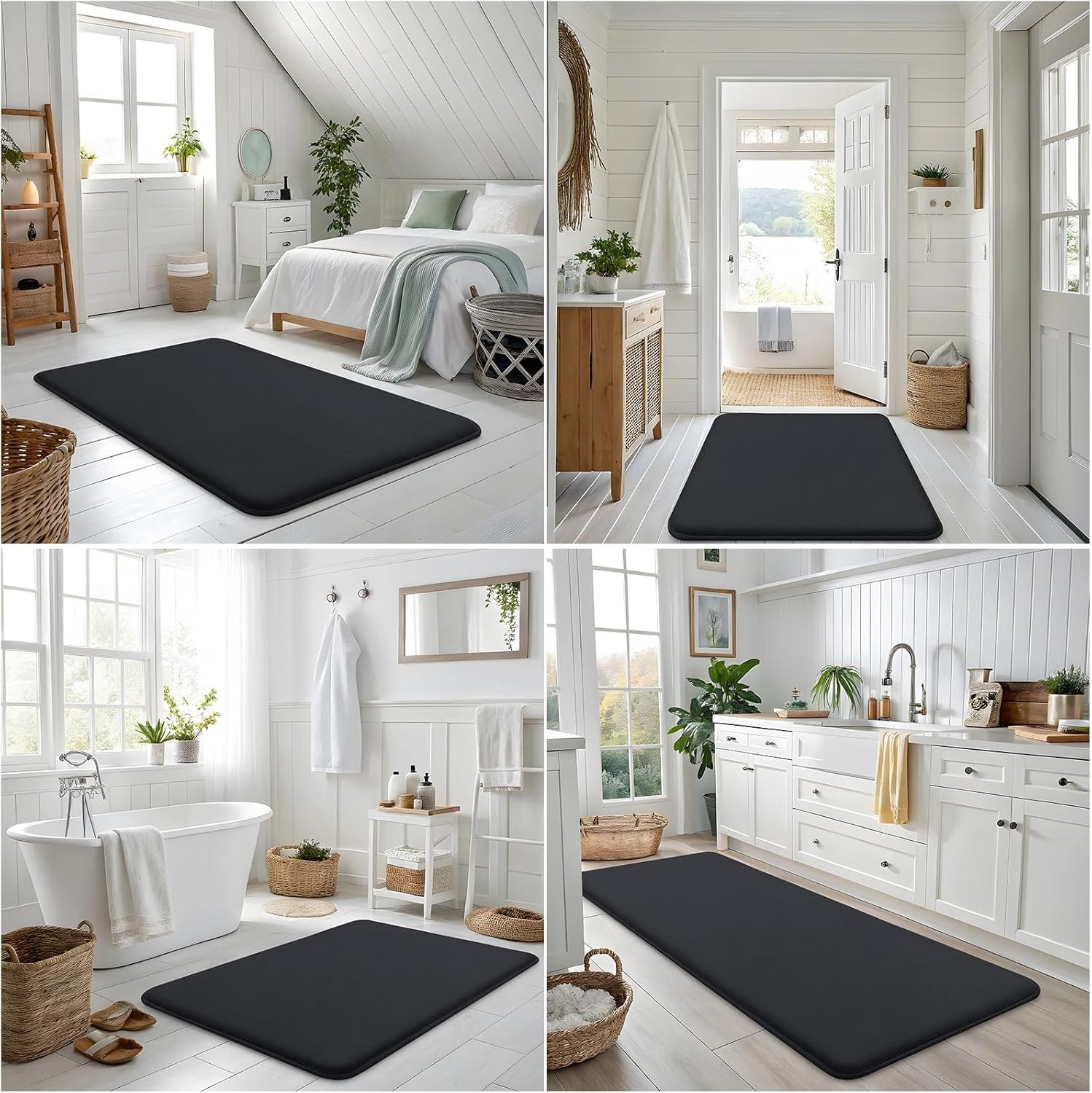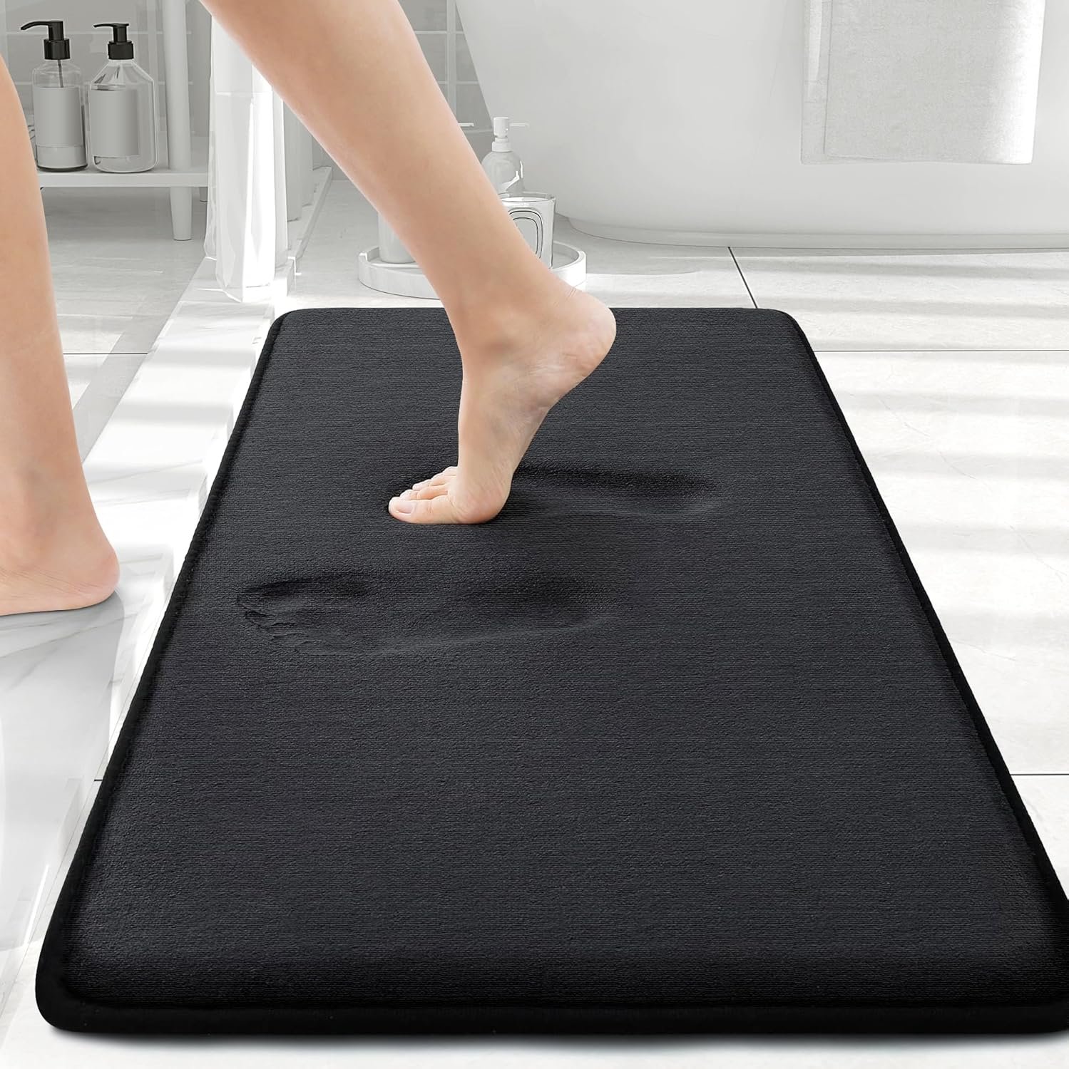 Smiry Memory Foam Bath Mat 30×20, Extra Soft and Absorbent Bathroom Mats, Non Slip Washable Carpet for Floor, Shower and Tub, Black