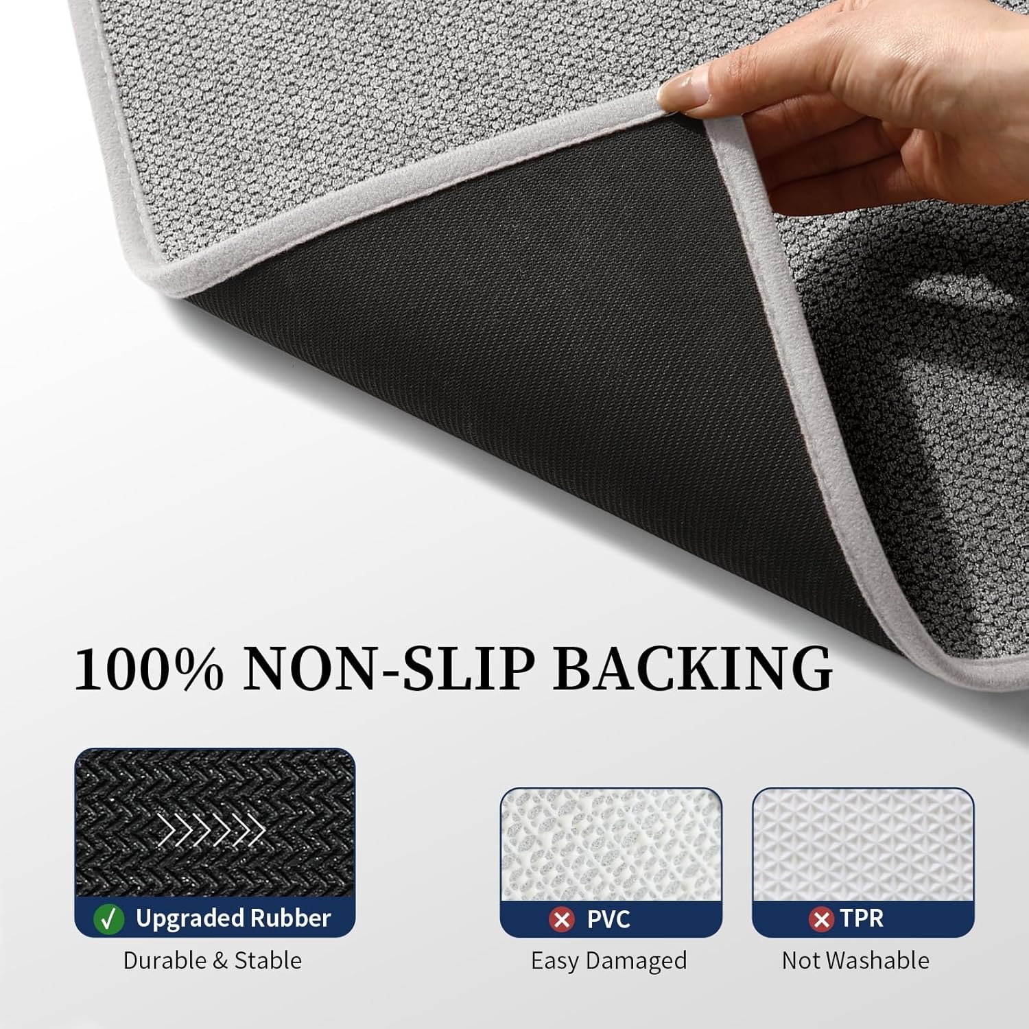 - NON-SLIP RUBBER BACKING FOR SAFETY: Say good-bye to Slippery Surfaces after showers! Our Non-Slip bathroom rug features a natural rubber backing that grips tile and hardwood surfaces firmly to prevent slips and falls, ideal for households with kids and the elderly