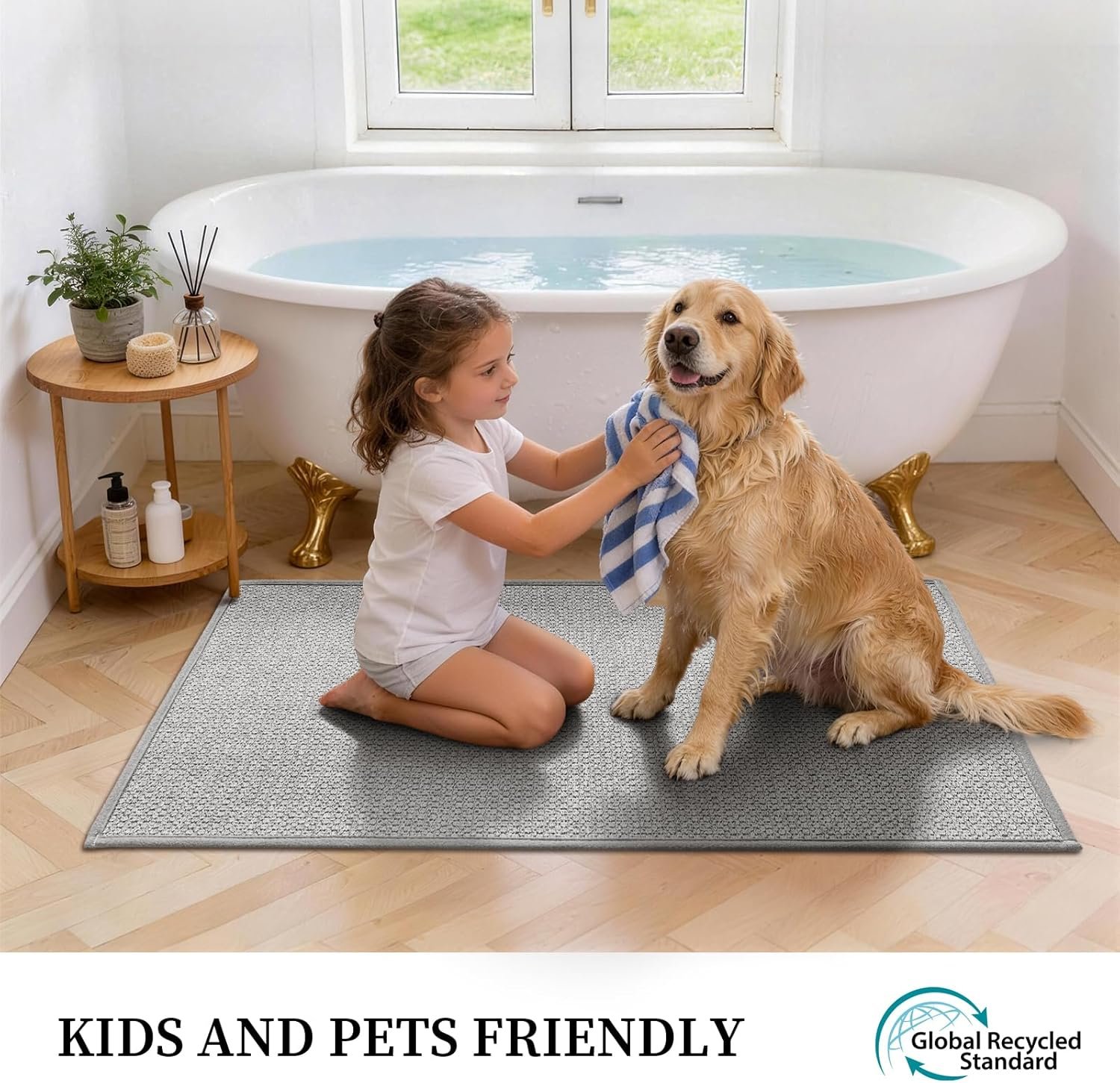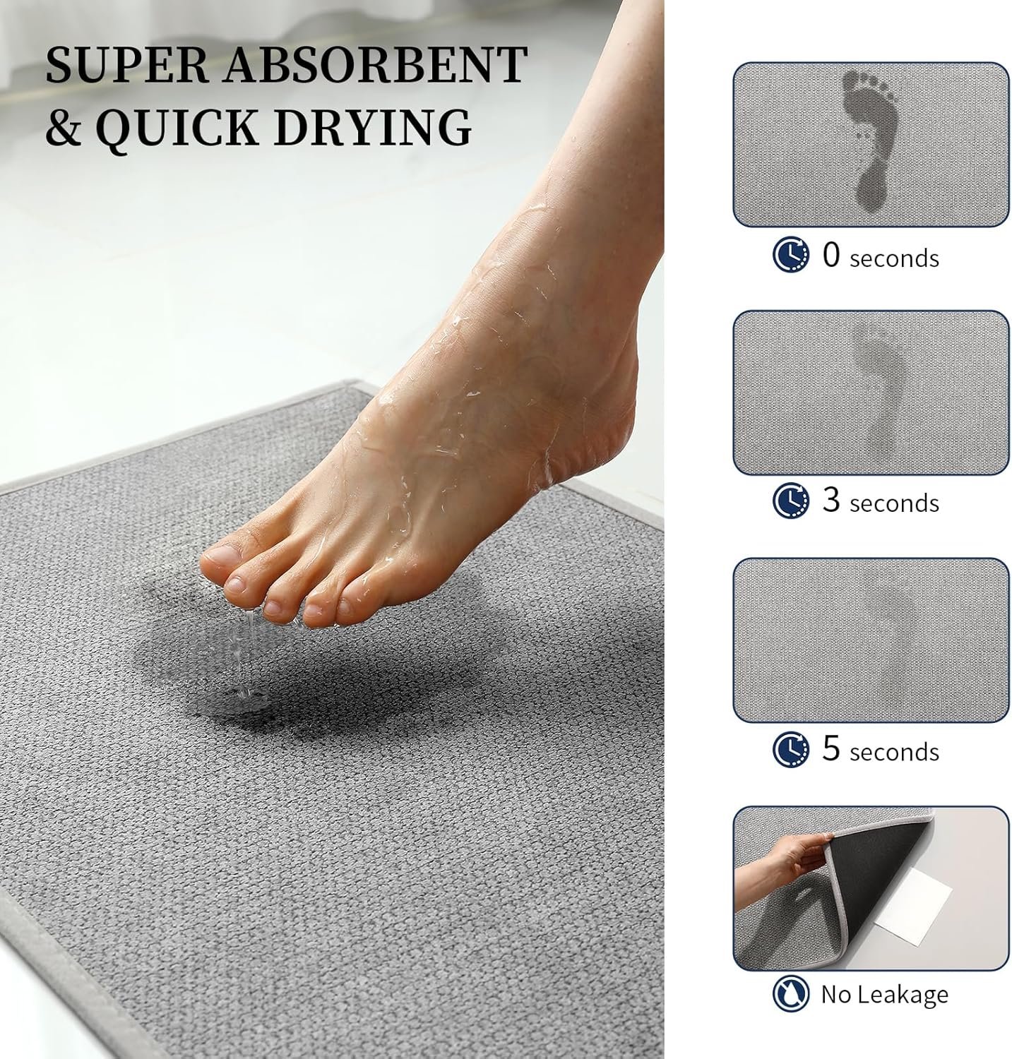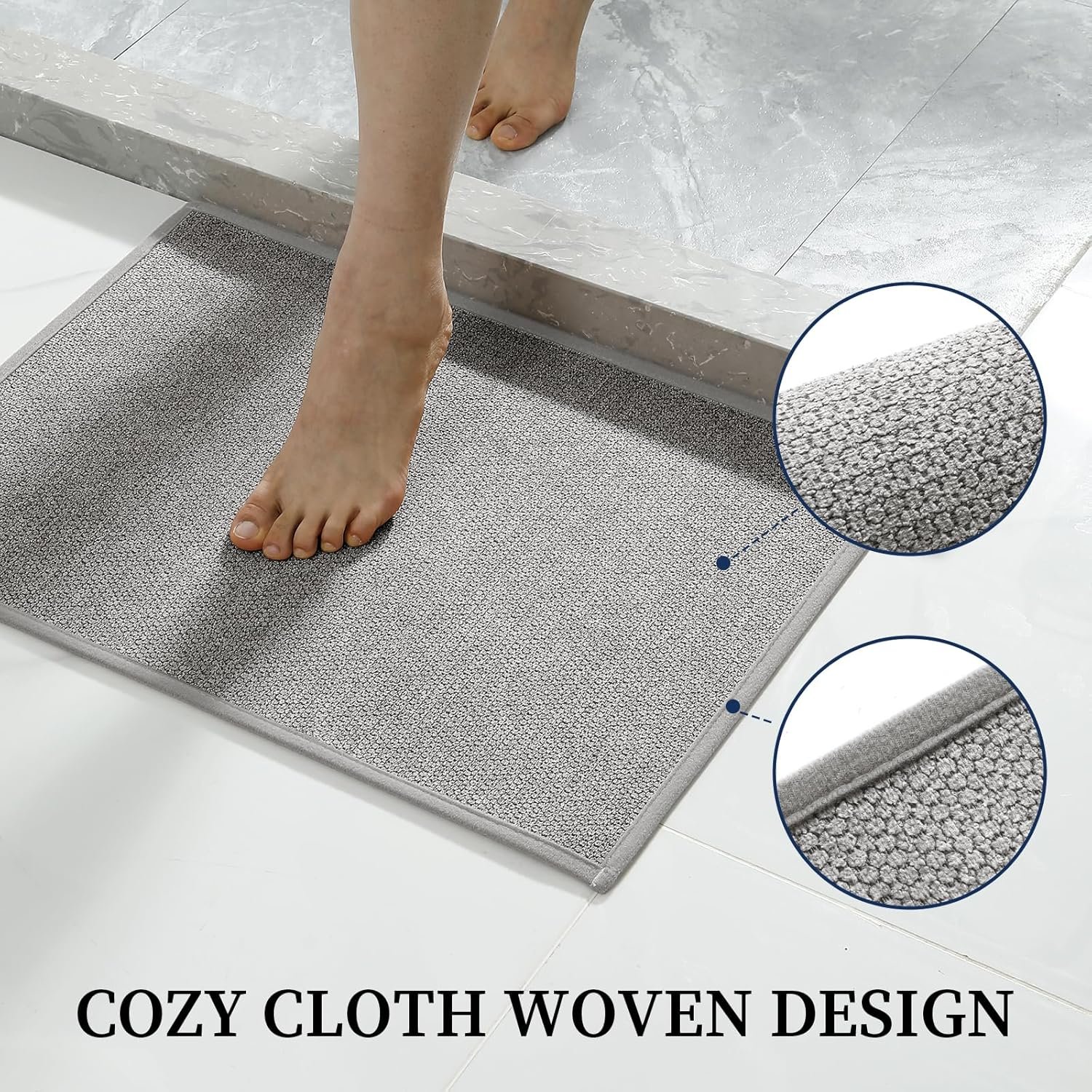 - EASY-CARE & DURABLE: This absorbent bath mat is machine washable and retains its absorbency, anti-slip grip, texture with no color fading or cracking after repeated cleaning. The flat fabric resists hair and dirt buildup, making it ideal for high-traffic areas and pet-friendly homes.Tips: Please use a neutral detergent (no chlorine or bleach) and cold water when washing