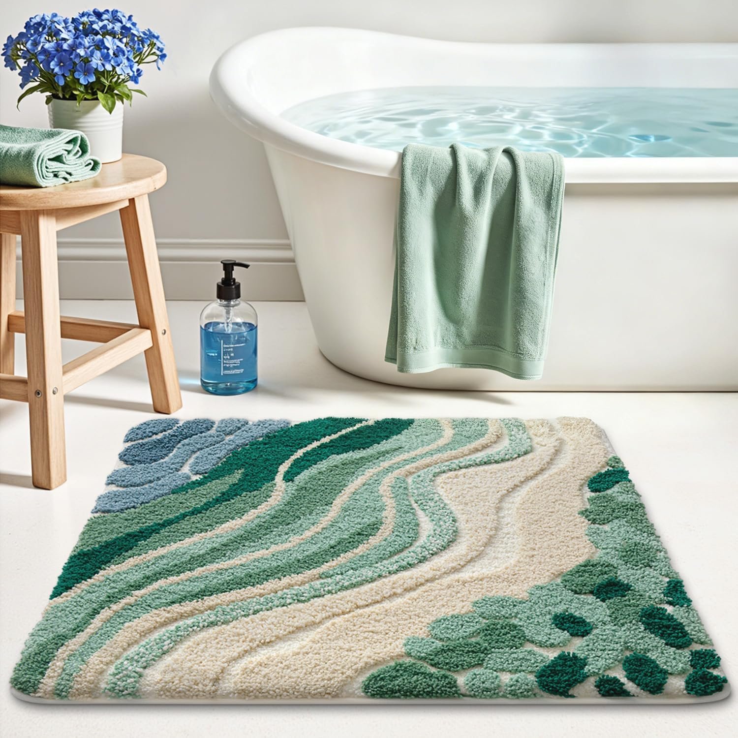 - Ocean Inspired Design: Inspired by ocean waves, this bath rug features flowing lines and a coastal motif that add modern elegance and artistic charm. A unique design that instantly elevates your bathroom décor with a serene seaside feel