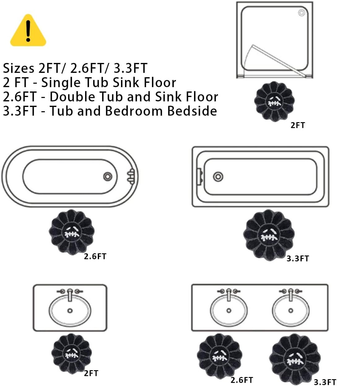 - Available Sizes: Trippy happy face rugs have 2 colors and 3 sizes in this series. 2ft more suitable for bathroom single bathtub floor and single sink floor. 2.6ft more suitable for bathroom double tubs and sinks and bedroom bedside. 3.3ft more suitable for living room area rug and decorative carpet for larger spaces.