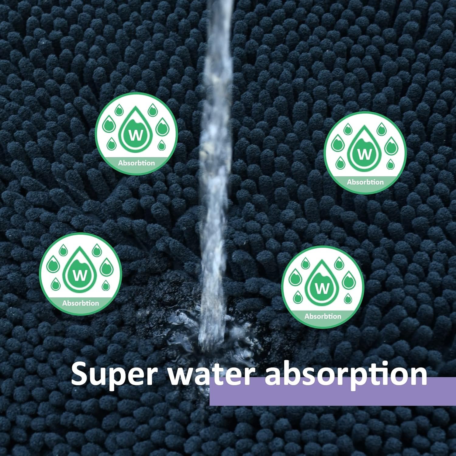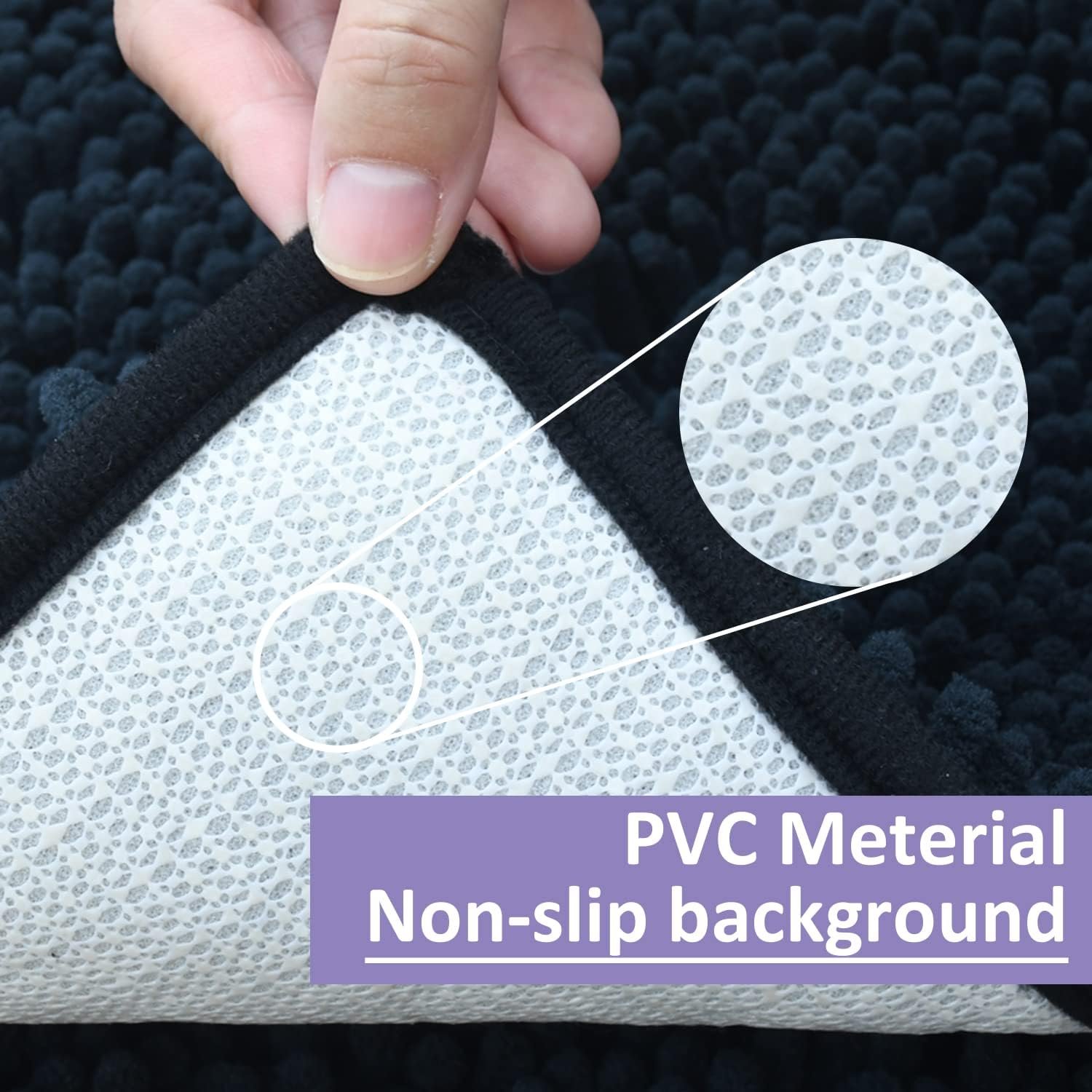 - 【Superior Water Absorbency】The bath mat is consist of 3 layers, the top 1.5 inch long individual microfiber pile layer made of thick Chenille fabric; the middle layer is filled with sponge; the bottom is a PVC non-slip layer. This three -layer structure makes our bathroom carpets have excellent water absorption performance, which can absorb a lot of water in a very short time.